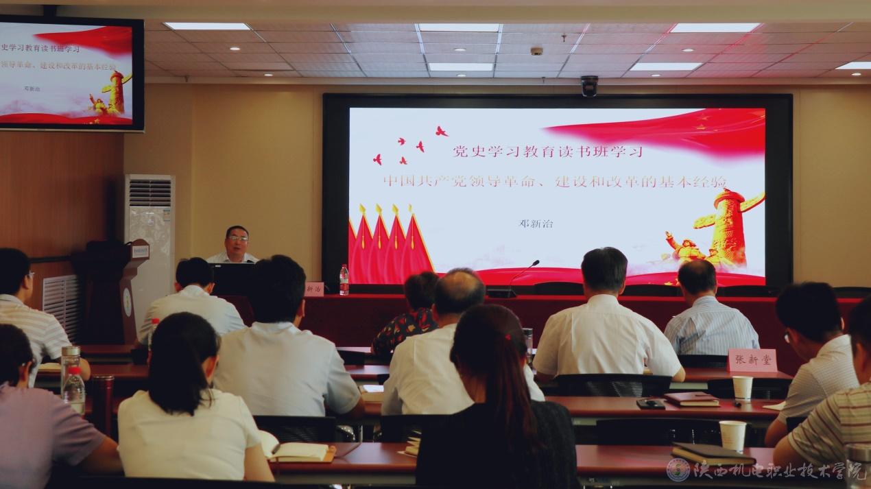 然后,党委副书记 邓新治同志以《中国共产党领导革命、建设和改革的基本经验》为题进行专题党课讲授,邓新治从新民主主义革命时期、社会主义革命和建设时期、改革开放和社会主义现代化建设新时期以及中国特色社会主义新时代四个伟大的历史时期出发系统阐述了我党领导的革命、建设和改革中都留下了宝贵的精神财富和基本经验。