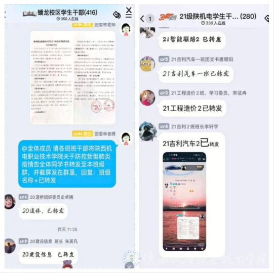 12月28日,校党委学工部、团委发布《英国365上市公司关于防控新型冠状病毒肺炎疫情告全体同学书》,全校团学干部积极响应,第一时间将内容转发至班级群内,号召全校同学积极行动,全力配合学校做好疫情防控的各项工作。