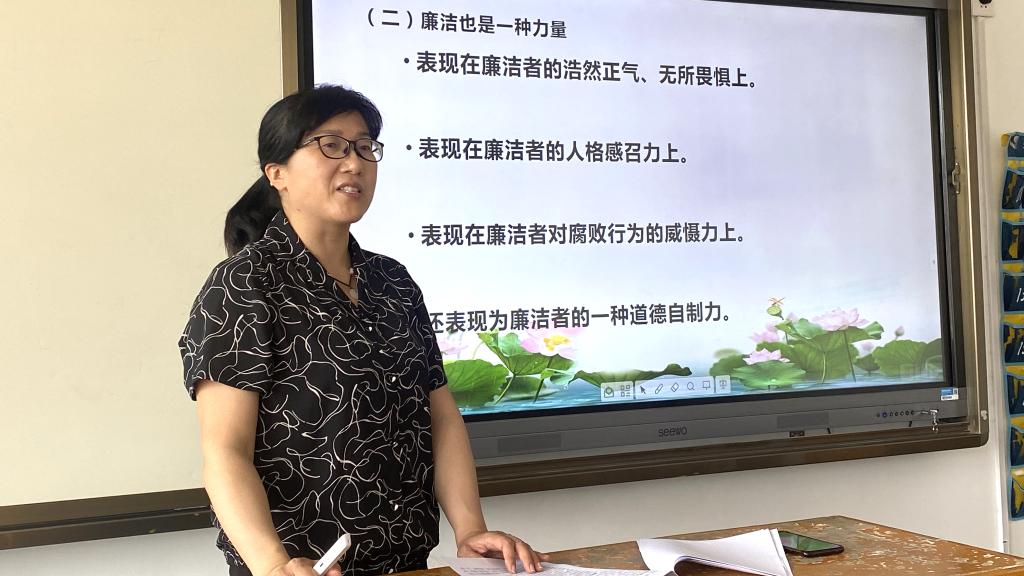 满春燕强调,廉洁从教是现代教师的职业道德。教师在从事教育活动中不能借职业之便谋取私利,要自觉抵制不良风气,保持高尚情操,做到廉洁自律,公平执教,严谨治学。这不仅是“立教”的需要,也是“树人”的需要,更对社会风尚的文明倡化具有深远影响。