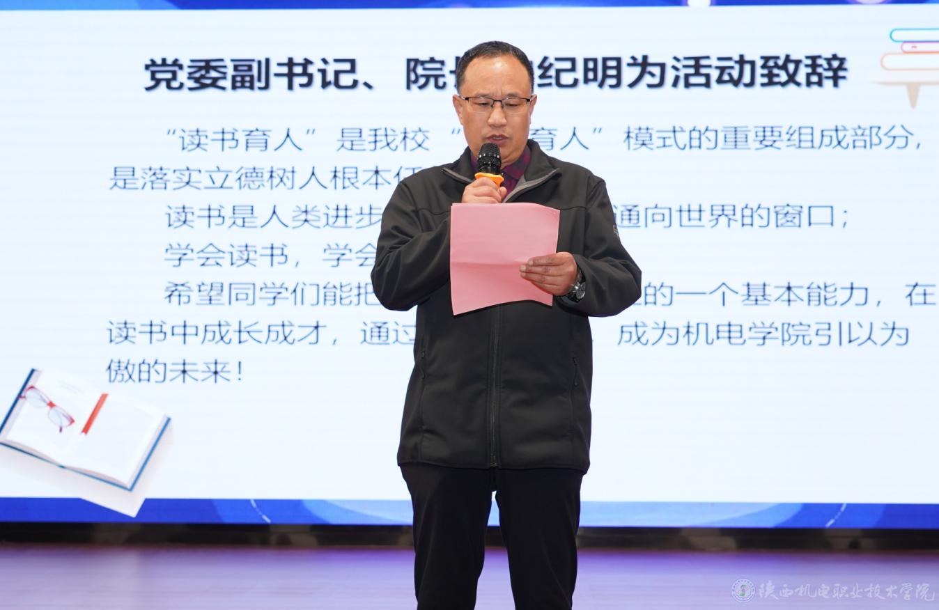院长向纪明致开幕辞,希望同学们都能把读书作为自己人生的一个基本能力,在读书中成长成才,通过读更多的书,成就美好未来!