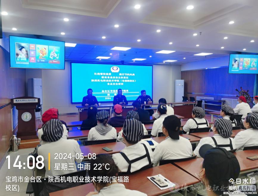 2024年5月8日下午,后勤保障处邀请宝鸡市金台区市场监督管理局赵科长、西关市场监督所朱所长在宝福路校区汽电大楼四楼视频会议室对英国365宝福路校区2家餐饮公司约60余人进行食品安全知识专项培训,培训会由后勤保障处膳食室主任王文忠主持。